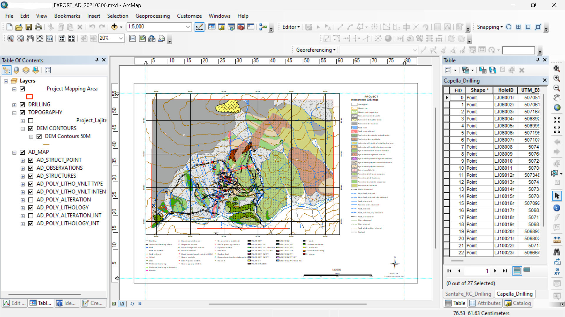- Separación de información litológico, alteración, estructural etc para preparación de productos individuales en SIG